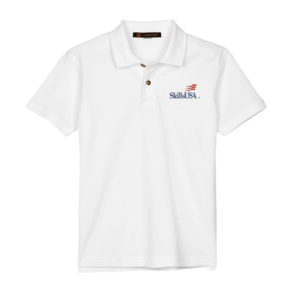 This official white 100% ringspun cotton piqué polo features a two-button placket and the SkillsUSA logo.