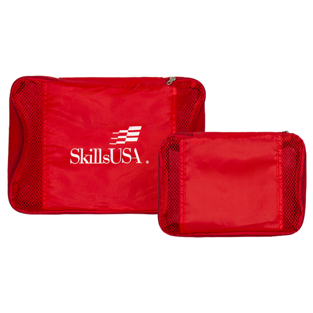 The Packing Cube Set helps you stay organized while you travel. This set includes two sizes; 1 medium and 1 small cube, which allow you to keep your items clean and safe. Each cube features ample room to pack clothing, jewelry, tech accessories or hygiene products, while mesh accents allow you to easily identify your belongings. This set can be packed in your suitcase, tote bag or carry on for easy access. When not in use, the small cube will fit into the large cube for easy storage.