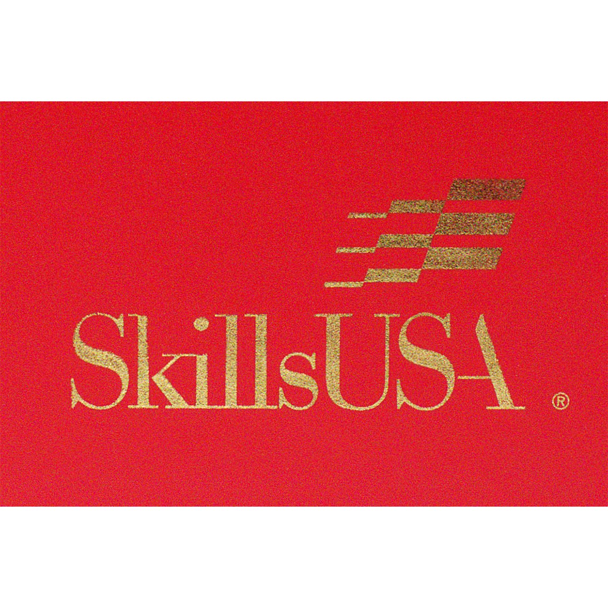 Organize your materials with this 1'' wide red binder with SkillsUSA Emblem in gold on front cover.